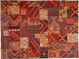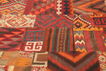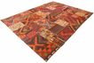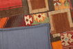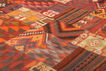 Kilim Patchworks are produced of older Persian kilims. These have been cut in smaller pieces and sewn together in new designs and sizes. Colours and designs are harmonic and specially chosen. A backside has been sewn on. Kilim Patchworks are produced of rug that are between 20 and 50 years old. The kilims is a flat woven carpet that is woven by nomads in the south of Persia. They use a special technique when weaving, giving the carpet a thinner and cover-like quality.