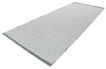100% plastic where plastic straps are woven together and create rugs that are very durable and require minimal maintenance. Use mild detergent to remove any stains or wash at 30°C without any spinning cycle or tumble drying.