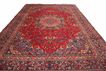 This carpet is knotted in Mashad the capital in the province of Khorasan, an area in norteastern Persia. The patterns are often medallions in dark blue-red and blue nuances and the wool in the carpet is very soft. The Mashad carpets often resemble some Keshan carpets.