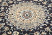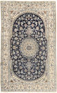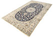 This carpet is knotted in workshops in the city of Nain in central Persia, near Isfahan. The carpet is generally very light with a cream-coloured or deep-blue bottom colour and a large medallion in the center. High knot density and high-class material gives carpets of high quality. They are manufactured in most sizes and the carpet is among the most beautiful in the world and very popular among collectors.